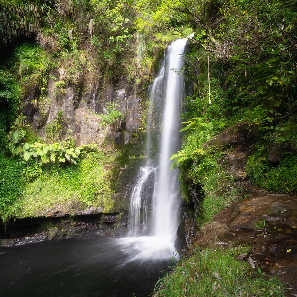 Kaiate Falls is a 25 minute drive from Tauranga. The main track leads to the top, and then to the base of the upper series of falls before continuing downhill to the lower falls.