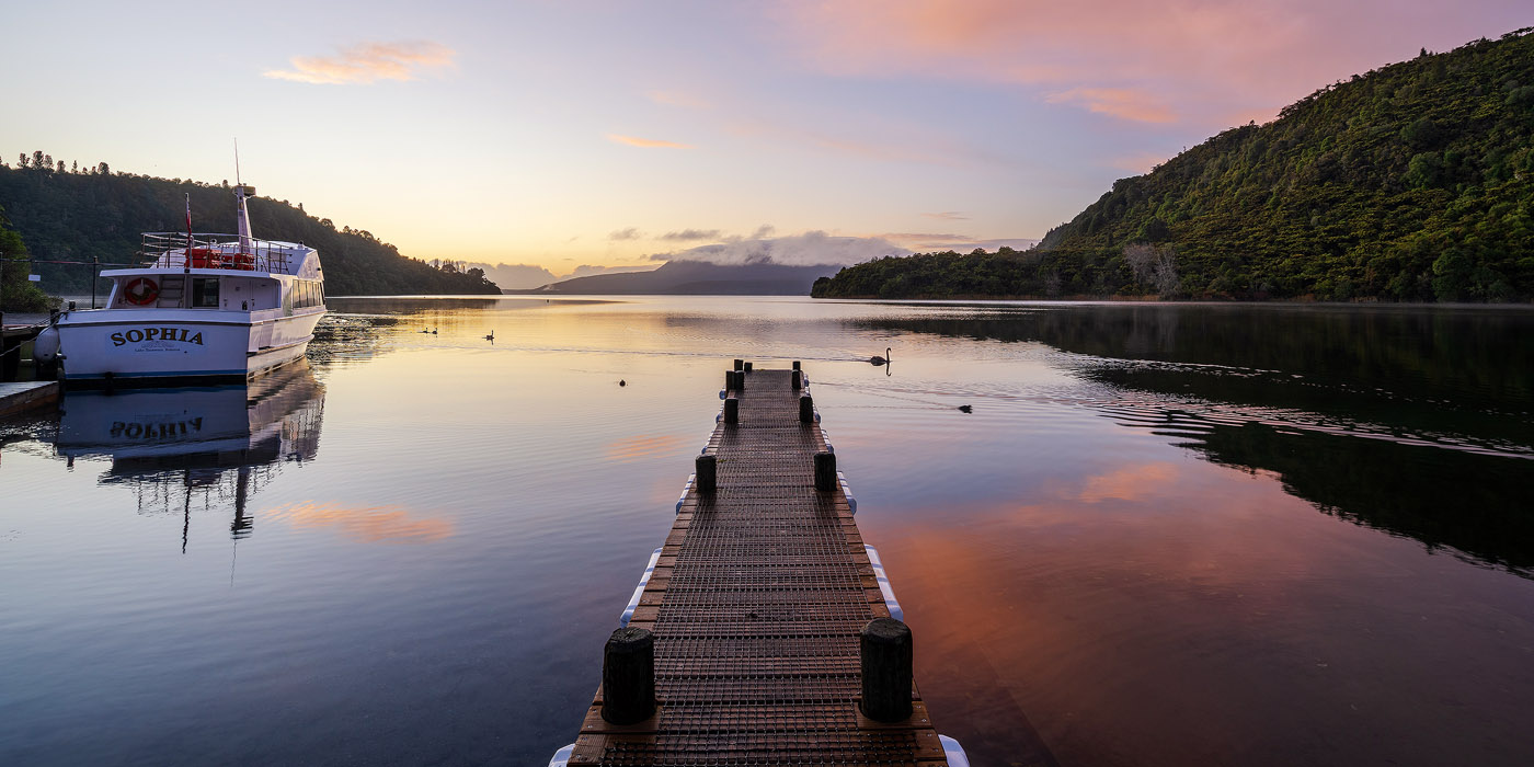 A beautiful calm sunrise at Lake Tarawera, Rotorua.