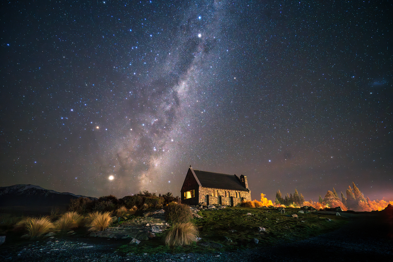 The Milky Way rising above the Church of the Good Shepherd, Lake Tekapo.